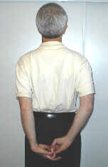 Process: With the arms straight, interlock the little fingers behind the back. Place the thumbnail of each hand over the nail on the little fingers. Inhale deeply. Stretch back, expanding the chest.