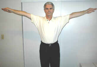 Process: Stand. Place the thumbs over the nail of the index finger. Stretch your arms straight out to both sides. With the other fingers pointed firmly outward, trace circles in two vertical planes the size of your head, going from front to back on top.